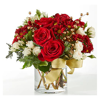 规格  红色玫瑰, 迷你米白色玫瑰, 红色小雏菊, 圣诞叶材