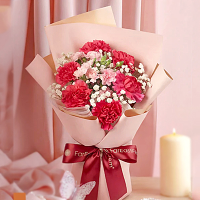 规格  6 支康乃馨,配上康乃馨花束和满天星。