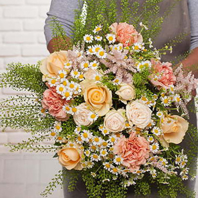 规格  庭园玫瑰、白色洋甘菊、绿色叶材等