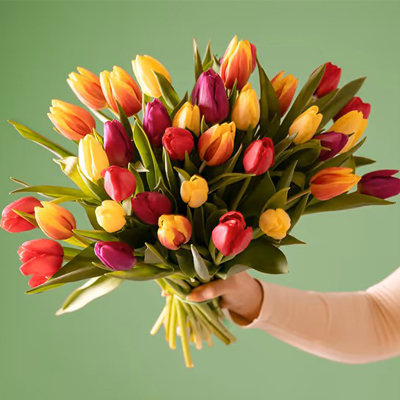 说明  这款花束精选多色郁金香,色彩亮丽,是送给特别之人的春日惊喜之选。每束均由花艺师手工制作,严选花材,兼具美感与实惠。